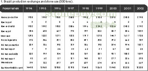 最好的技術資源必然是開采和加工荒料并用于出口http://en.stonebuy.com/,最初的那些人造產品http://www.stonebuy.com/sample/被運至富裕的接納性強的美國市場http://www.stonebuy.com/enterprise/FuJian/QuanZhouShi.html,到目前為止,這個國家從巴西購買了數額巨大的已加工產品http://www.stonebuy.com/sample/。這連同財政和貨幣困難說明了為什么國內消費容納性比較強且多年來幾乎完全保持穩定,石材http://www.stonebuy.com/主要用于建筑用途(表1)。www.stonebuy.com