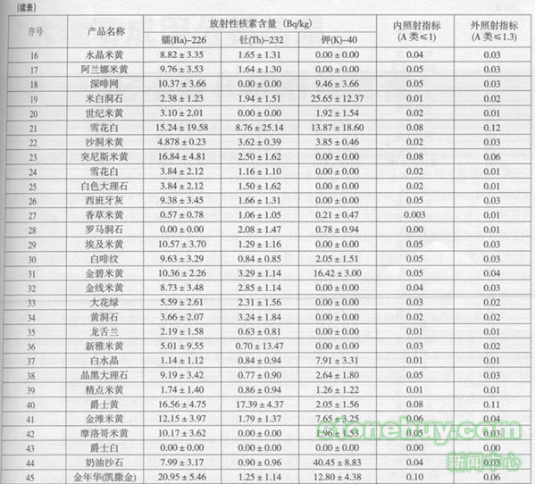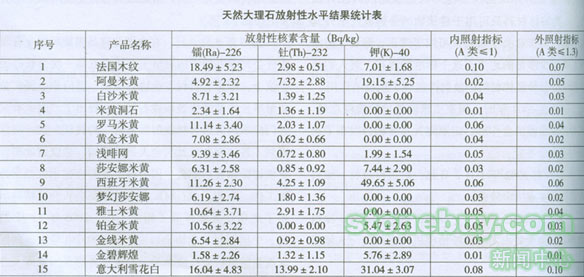 3.從目前國家建筑材料工業石材http://www.stonebuy.com/質量監督檢驗測試中心這一權威質量檢驗部門對送檢的天然大理石檢測所獲得的所有數據來看,天然大理石都屬于A類放射性裝修材料范疇,其使用范圍不受任何限制,可以在任何場地使用(見天然大理石放射性水平結果統計表);