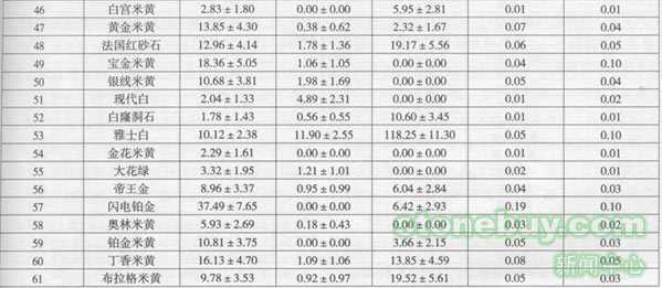 天然大理石放射性水平結果統計表