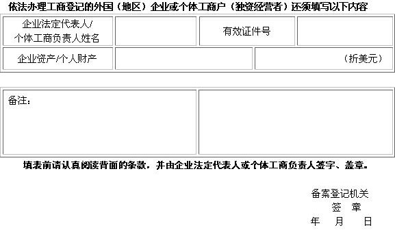 (二)填寫《登記表》。對外貿易http://www.stonebuy.com/trade/經營者應按《登記表》要求認真填寫所有事項的信息,并確保所填寫內容是完整的、準確的和真實的;同時認真閱讀《登記表》背面的條款,并由企業http://www.stonebuy.com/enterprise/法定代表人或個體工商負責人簽字、蓋章。