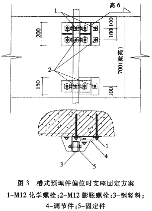 由于現場預埋件偏位情況各異,須根據不同情況選取不同的后置埋件,處理方法如圖3所示。