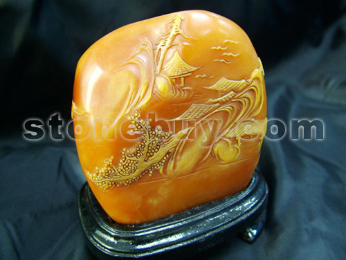 另外雕功對田黃的價值也有很大的影響,大師的工藝師的雕功價值1.5萬-2萬/兩,普通的工藝師的工藝也能達到每兩1萬元。由于田黃價值昂貴,所以一般采用薄意雕,以減少石材http://www.stonebuy.com/損失。