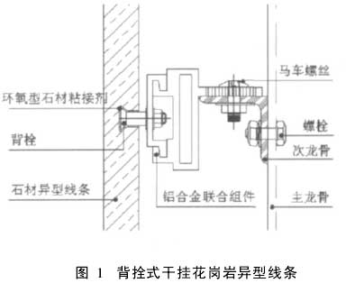 圓柱和圓柱底座四等,.每個平面有四個背栓,高度為836mm一個背栓,門窗線條視情況約800 - 1000mm一個背栓,施工時先在石材http://www.stonebuy.com/背面鉆孔,插入不銹鋼背栓,并擴脹使之與石板緊密連接,然后與龍骨連接,由金屬支架組成的橫豎龍骨通過預埋件連接固定在外墻上。