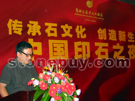 著名僑領青田印石藝術藏家協會理事長王澤厚先生在"中國http://www.stonebuy.com印石之夜"頒獎晚會上講話。