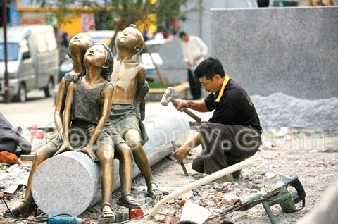“月亮常有吉祥之意,和太平街中的‘太平’二字意義相近。同時,月亮窗等古建筑元素石雕也可銜接古街區的風格和特色。”該組雕作者、省美術家協會副秘書長張祖平介紹,深顏色的銅與深厚的歷史韻味相吻合,白色的花崗石能給人帶來輕松活潑的感覺。www.stonebuy.com