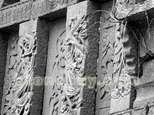 何氏牌坊地處老村口七里坪,坐西朝東,高約7米,寬約6米。建筑精巧,形狀美觀,結(jié)構(gòu)緊密,用料考究,全部是花崗巖條石榫鑲而成。頂部為三檐式,中高旁低,翹角飛檐,正頂豎一寶葫蘆,兩旁有表條對稱點飾。下面四柱三門,中門寬約二米,兩旁側(cè)門寬約一米,下有條石門坎,柱基座前后各有鼓形扁石護持。石條上均刻有花卉、動物等石雕,字體為楷隸。正面中間上屏刻寫“恩榮”二個大字,中屏刻寫封號緣由下屏刻有“節(jié)孝”二個大字。兩邊旁屏刻寫“名高松柏”“矢志冰霜”字樣。四柱外聯(lián)刻寫“書荻操箴遺二子,培蘭勁節(jié)范被七孫”。內(nèi)聯(lián)刻寫“誥頻頒特來一生亮節(jié),龍章寵錫曾旌萬載芳型”。四柱外聯(lián)刻寫“七十一年前懷考養(yǎng),百千載后著貞操”。內(nèi)聯(lián)刻寫“勃海傳芳天真欣畢見,廬江躒地脈慶鐘靈”。 m.oacwf.cn