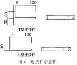 連接件分T型和L型兩種,均為定型產品http://www.stonebuy.com/sample/錳鋼構件,形式見圖4。