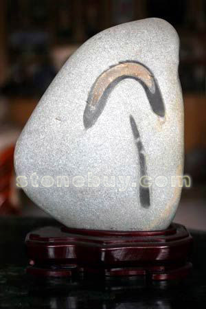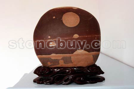 無獨有偶,當日下午1時許,記者在西固區(qū)河口鎮(zhèn)的張先生家中也看到了一塊類似的黃河奇石,不同的是該黃河石的體形稍大,呈淡褐色,黃河石正面上部有一個直徑約4厘米的銀色滿月,滿月的左下方有一顆衛(wèi)星在做繞月飛行,而且繞月軌道清晰可見。張先生告訴記者,大約一年前,他從一位石友處發(fā)現了這塊黃河石,當時覺得挺普通,并沒在意。最近電視、報紙連續(xù)報道“嫦娥”奔月的相關消息,他突然發(fā)現這塊黃河石頗似衛(wèi)星升空后繞月飛行的場景,便從那位石友處高價購得。
