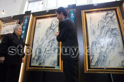 看似中國http://www.stonebuy.com畫傳統的潑墨山水,實際上卻是天然大理石不經過任何人工雕琢一刀切割而成。這場在農展館舉行的“天韻”大理石畫展15日開始,將于明日閉幕。