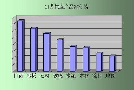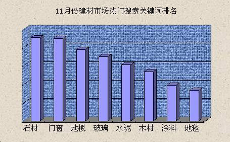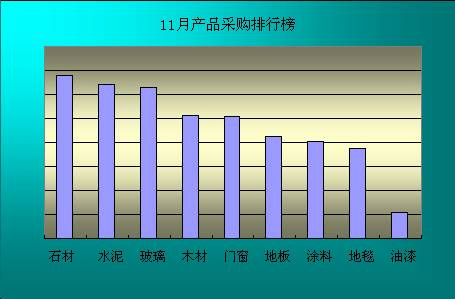 從上圖看出:石材http://www.stonebuy.com/經過前兩個月的市場http://www.stonebuy.com/enterprise/FuJian/QuanZhouShi.html歷練,終于榮登榜首修成正果,成為11月建材市場http://www.stonebuy.com/enterprise/FuJian/QuanZhouShi.html的最耀眼的黑馬。門窗、地板分居二、三列,其中適合做地熱的地板受到市場http://www.stonebuy.com/enterprise/FuJian/QuanZhouShi.html歡迎,這是由于天氣漸冷,每個小區都開始集中供暖了,市場http://www.stonebuy.com/enterprise/FuJian/QuanZhouShi.html對地熱地板的需求自然是大幅上升。