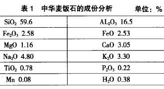 山西省五臺山地區最近發現的儲量可觀的黑曜石,是一種可用于合成石與微晶玻璃生產的極為理想的原料。黑曜石是一種由基性、超基性巖經變質作用生成的天然火山玻璃。該區域內出落地層是下元古界小滹沱群石嘴亞群長城嶺組、駝梁段及新生界第四系。在區段內廣泛分布,基性巖主要是花崗巖、麻巖、千枚巖和輝綠巖,呈脈狀平均為4米層厚產出。本礦區黑曜石為黑色和綠色玻璃體結構,其礦物成份為:SO2 74.27%,AL2O 3 8.42%,CaO 1.21%,MgO0.24% FezO3 2.32%,K2O 2.48%, Na2O 4.68%,其他元素6.38%。