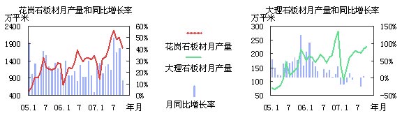 1-10月全國花崗石、大理石板材累計產量比去年同期均有增長