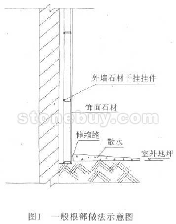 建筑物外墻石材http://www.stonebuy.com/干掛飾面,較粘貼飾面相比,因具有很多的優點,在工程中被廣泛地推廣與應用。傳統的做法是落地式石材http://www.stonebuy.com/干掛飾面在完工后,其根部直接用素土或灰上掩埋,這樣會造成建筑物在沉降過程中,地面反力擠壓石材http://www.stonebuy.com/。而干掛工藝施工飾面石材http://www.stonebuy.com/主要靠與掛件的連接固定,受力點較少,其次石材http://www.stonebuy.com/受自身材質的約束,所承受的外力較小,故易造成墻體最低端石材http://www.stonebuy.com/變形或破裂,尤其四角較為嚴重,更有甚者其上部會連續遭到破壞,影響建筑物的關觀效果。而且因石材http://www.stonebuy.com/干掛施工工藝的特點,更換已損石材http://www.stonebuy.com/也十分困難。