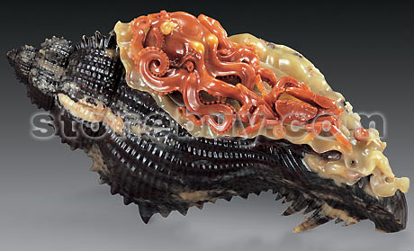 巴林石巧雕章魚擺件