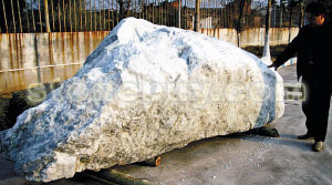 據林先生介紹,該玉石為和田青白玉山料,長3.75米、寬1.45米、高1.35米,重達11噸,呈棱角狀。該玉石是七年前由當地人在昆侖山上海拔3500米處發現,林先生得知后與朋友合伙花重金買下,并用炸藥爆破取出,再用了6年時間以人力和牦牛拖拉,從沒有道路的高山上搬運下來。后經烏魯木齊轉運廣東,終于在近日運抵林先生故鄉興寧,僅搬運費用就用了6萬多元。