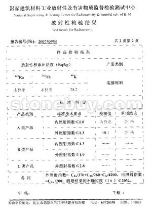 據了解,1999年發布的《建筑材料放射性核素限量》就明確規定:各企業http://www.stonebuy.com/enterprise/進行產品http://www.stonebuy.com/sample/銷售時,應持具有資質的檢測機構出具的符合本標準規定的天然放射性核素檢驗報告。但實際上,市場http://www.stonebuy.com/enterprise/FuJian/QuanZhouShi.html上真正能出具合法檢測報告的企業http://www.stonebuy.com/enterprise/很少。對此,專家呼吁,為了確保消費者買得放心、用得安心,商家理應提供合法檢測報告。pic.stonebuy.com