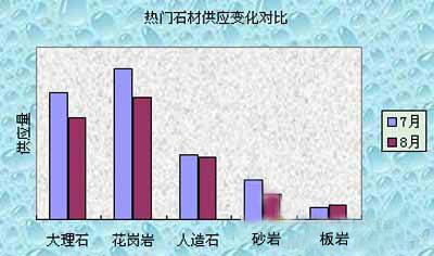 我們從圖3可以看出,作為主要裝飾用石材http://www.stonebuy.com/的花崗巖和大理石,8月供應量均下降了19%,說明北京奧運對石材http://www.stonebuy.com/市場http://www.stonebuy.com/enterprise/FuJian/QuanZhouShi.html的影響還是非常明顯的。而板巖、人造石的供求變化與7月基本持平。