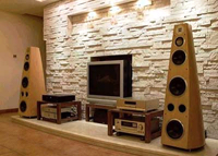 鑲嵌天然文化石的背景墻最為常見,從功能上說,文化石可以吸音,避免音響對其他居室的影響,從裝飾效果上看,它烘托出電器產品http://www.stonebuy.com/sample/金屬的精致感,形成一種強烈的質感對比,十分富有現代感。