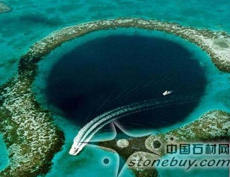洪都拉斯伯利茲市附近海域有一處叫做“藍(lán)洞”的水下坑洞,這個(gè)大洞直徑為1000英尺,深400英尺。它是在冰河時(shí)代末期形成的一個(gè)石灰石坑洞。