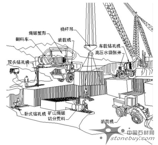 不過隨著石材http://www.stonebuy.com/用超硬合金的研究發(fā)展,目前也出現(xiàn)了許多專門用來開采切割花崗巖的金剛石礦山繩鋸,不少礦山也采用礦山繩鋸來開采花崗巖荒料了。