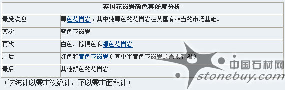 英國花崗巖市場http://www.stonebuy.com/enterprise/FuJian/QuanZhouShi.html的需求喜好: