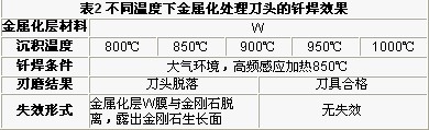表2不同溫度下金屬化處理刀頭的釬焊效果金屬化層材料W