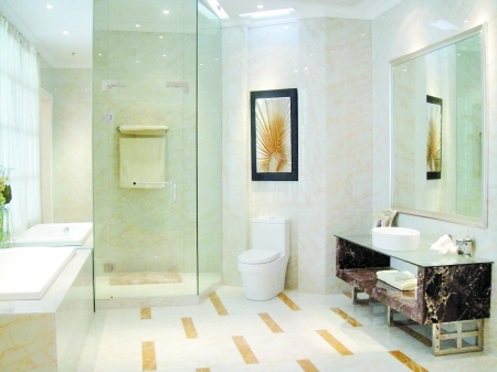 記者在銷售現場看到,這些瓷磚對天然石材http://www.stonebuy.com/的模仿很到位,通過施釉工藝,陶瓷表面接近鏡面的效果,紋路也栩栩如生,不少消費者都感嘆,“很像玉石”,不過在價格上,卻遠遠低于天然石材http://www.stonebuy.com/。馬可波羅地心巖系列瓷磚采用“3G”技術,仿造大理石的紋理,運用鐳射高精密滲花深度處理,每一塊瓷磚紋理均有所不同,營造了火山巖石般的滄桑、自然之感。簡一大理石則應用國際最新人造石材http://www.stonebuy.com/技術,在保留了天然石材http://www.stonebuy.com/高貴、典雅特性的同時,又將簡一陶瓷色澤艷麗、光潔度高、耐磨性好的特點獨特地呈現出來,其天然質感和裝飾效果完全可與天然大理石媲美。
