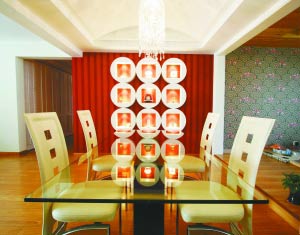 家居設計中重復的構成元素有很多,主要是指形狀、顏色、大小等方面。比如中式設計中的窗格,可以用在隔斷、墻面、屏風、展示架等各個方面,通過這種重復使用的方式加深中式家居風格給人的印象,同時,也讓家居中的每一個空間都有統一的主題。