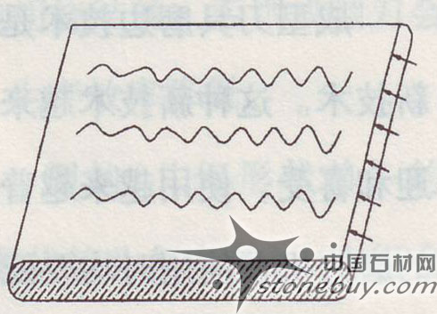 4. 畫線。將模板緊貼所要磨邊的石板材兩側(cè)邊緣,用合適的筆畫出所要磨的邊的形狀。見圖二。