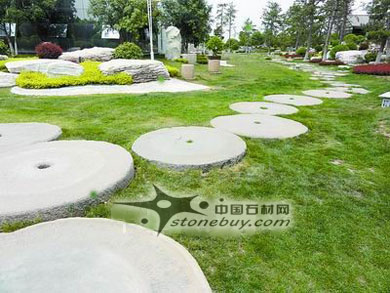 在西安中國http://www.stonebuy.com唐苑盆景園內,磨盤小徑成為園區一大亮點。園主人將多年來從各地搜集的大大小小的磨盤鋪成園路,自然古樸又頗具傳統韻味。