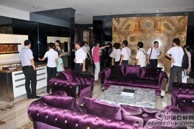 參觀團本次參觀的重要項目是東華環球即將開業的19號石庫石材http://www.stonebuy.com/精品館,目前館內裝修也接近尾聲,多個商戶也都已經裝修完畢并試營業。參觀團約一百五十人,進入19號石庫并聽完解說后,他們難以想象石材http://www.stonebuy.com/會這么奢華漂亮,能這么使用。紛紛表示有將自己房子重新裝修的沖動,19號石庫石材http://www.stonebuy.com/精品館真正的體現了何為奢華石材http://www.stonebuy.com/,更重要得是改變了許多消費者對石材http://www.stonebuy.com/消費的概念,從根本上推廣石材http://www.stonebuy.com/在裝飾裝修上的應用。