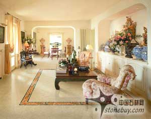 米黃色為底色,略帶白色的淺紋仿石材http://www.stonebuy.com/瓷磚能營造出簡約高貴的歐式空間