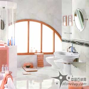 白色仿石材http://www.stonebuy.com/瓷磚令衛浴空間更加整潔流暢