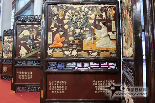 以石材http://www.stonebuy.com/雕刻出來的栩栩如生的畫面平緩地闡述孔子的生平事跡,石作鑲嵌在古香古色的木頭中間,這套屏風讓人不由得駐足欣賞。