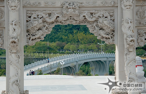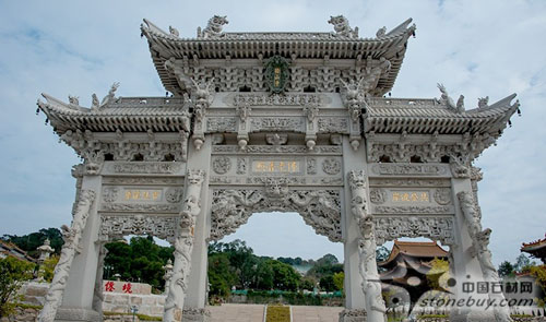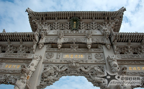 惠安石雕師傅雕刻完美石材http://www.stonebuy.com/山門。梅山寺石質(zhì)山門總高度23米,寬23.6米,全部由花崗巖石雕刻而成,四柱三門結(jié)構(gòu),大型山門總石方用量達(dá)680多立方米,居我國(guó)現(xiàn)有石質(zhì)山門中石方用量之首。山門雕刻工藝高超,其復(fù)雜程度和難度全國(guó)罕見(jiàn)。斗拱采用的是整塊石材http://www.stonebuy.com/,
