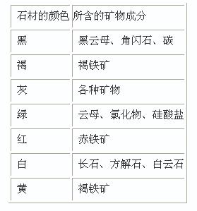 石材http://www.stonebuy.com/顏色同其所含礦物組成對應表
