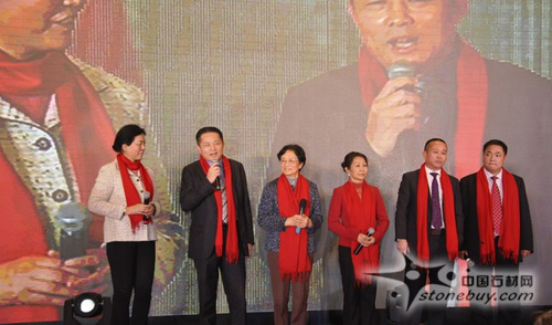 【嘉賓左起:上石協會長王京春、全國工商聯石材http://www.stonebuy.com/業商會會長呂安民、上海市商業聯合會會長、上石協名譽會長、上海市人大原副主任任文燕、全國工商聯石材http://www.stonebuy.com/業商會秘書長李山麗、上石協執行副會長呂振作、晚會贊助企業http://www.stonebuy.com/enterprise/:奧齊機械http://www.stonebuy.com/machine/董事長張士輝】