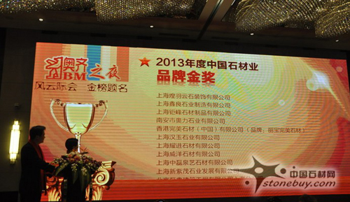 “2013年度中國http://www.stonebuy.com石材http://www.stonebuy.com/業十大領軍企業http://www.stonebuy.com/enterprise/、十大領軍人物、十大杰出青年、中國http://www.stonebuy.com石材http://www.stonebuy.com/業質量金獎、品牌金獎、誠信經營金獎、石材http://www.stonebuy.com/礦山20強、石材http://www.stonebuy.com/工程20強、石材http://www.stonebuy.com/機械http://www.stonebuy.com/machine/工具十強、異型雕刻十強、養護施工、人造石十強”等最具權威和影響的榜單和榮譽隆重揭曉!中國http://www.stonebuy.com石材http://www.stonebuy.com/業風云榜不光是對行業優秀企業http://www.stonebuy.com/enterprise/和人物的肯定和嘉獎,更是樹立了行業的標桿,打造了品牌效應,發出了中國http://www.stonebuy.com石材http://www.stonebuy.com/業的正面聲音,是石材http://www.stonebuy.com/人努力拼搏頑強奮進的精神寫照。