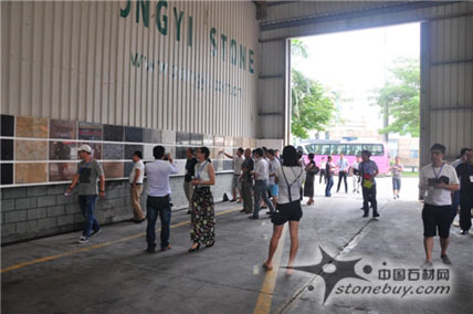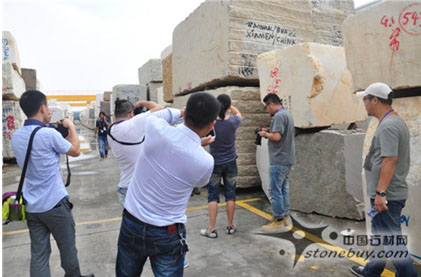 ▲ 設計師在卡斯維諾全球最大石磚展廳內參觀留念