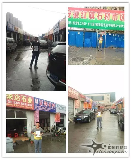 安徽招觀期間一路陰雨蒙蒙,工作人員雨中仍堅持工作,保持微笑,熱情洋溢,受到了經銷商們的高度贊揚!安徽紅旗石材http://www.stonebuy.com/市場http://www.stonebuy.com/enterprise/FuJian/QuanZhouShi.html!