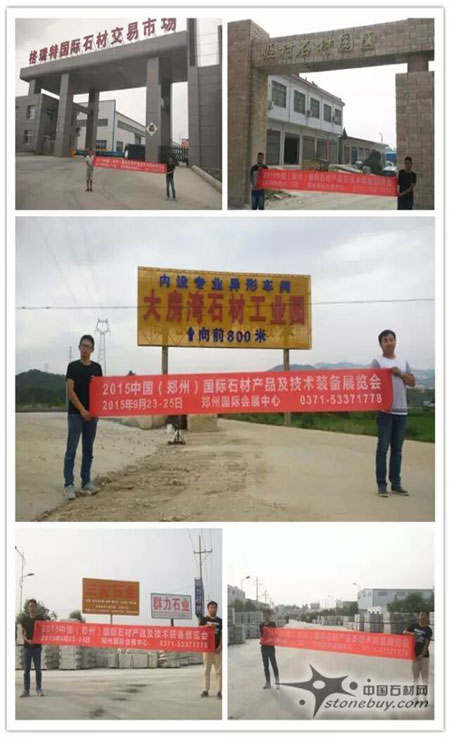 紅條幅扯起來,宣傳工作火起來!不僅是專業(yè)石材http://www.stonebuy.com/市場http://www.stonebuy.com/enterprise/FuJian/QuanZhouShi.html及經(jīng)銷商,精英團隊還去往山東各大石材http://www.stonebuy.com/企業(yè)http://www.stonebuy.com/enterprise/,宣傳邀請的同時也使我們更加深入了解市場http://www.stonebuy.com/enterprise/FuJian/QuanZhouShi.html,從而打造更加專業(yè)、優(yōu)質(zhì)的展會。