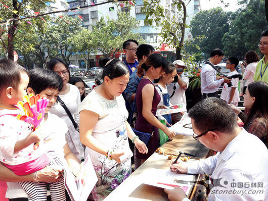 再接下來就是萬峯石材http://www.stonebuy.com/向廣大茂名市民兌現承諾的時刻——熱鬧的簽售、抽獎環節開啟,許多下訂的客戶排隊簽售、抽獎、兌換禮品,熙熙攘攘不亦樂乎,抽得獎品盡興而歸!