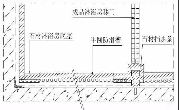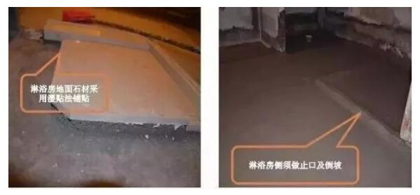 3、 沐浴房門檻石材http://www.stonebuy.com/須采用濕鋪工藝進(jìn)行鋪貼,預(yù)防淋浴用水落地后向外滲透。