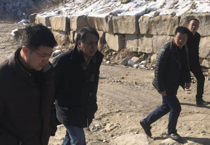 中國http://www.stonebuy.com石材http://www.stonebuy.com/協會礦山資源委員會主任、中材地質工程勘查研究院有限公司執行董事、總經理田震遠(左二)在石材http://www.stonebuy.com/礦區調研。