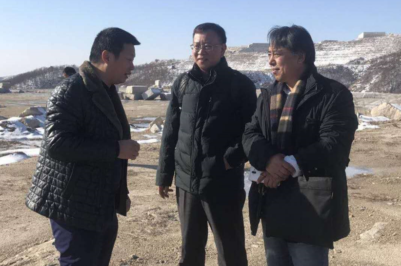 中國http://www.stonebuy.com建筑材料工業規劃研究院副院長蘇桂軍(右一)、中材礦產地質勘查院院長楊風辰(中)在石材http://www.stonebuy.com/礦區調研。