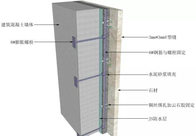 石材http://www.stonebuy.com/與混凝土墻相接三維示意圖:
