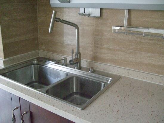石英石對(duì)廚房中的酸堿等有極好的抗腐蝕能力,日常使用的液體物質(zhì)不會(huì)滲透其內(nèi)部,長(zhǎng)時(shí)間置于表面的液體只需用清水或清潔劑清洗,再用抹布擦除即可,必要時(shí)可用刀片刮去表面的滯留物。但是,很多人往往清潔不及時(shí)或不細(xì)致,以致石英石臺(tái)面留有油漬或很多縫隙藏有污漬,該如何清潔石英石臺(tái)面呢?