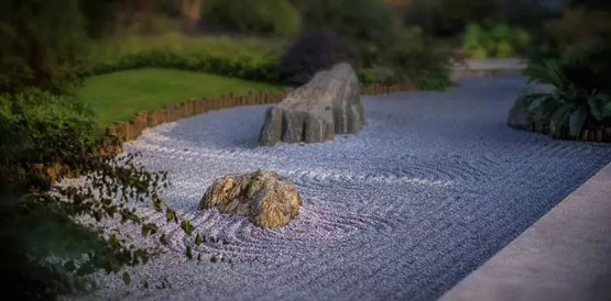 礫石是造園師頗為偏愛的一種設計材料。礫石對于大眾而言,最驚艷的印象大概是日式景觀中的枯山水。以石勾勒,代表枯盡的江河湖海,真可謂以小見大,以微顯著手法的翹楚了,詩意、禪意盡在一石之間。