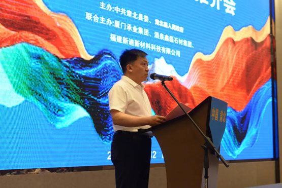 中共甘肅省酒泉市肅北蒙古族自治縣縣委常委、常務副縣長韓積罡向來賓介紹肅北項目發展情況