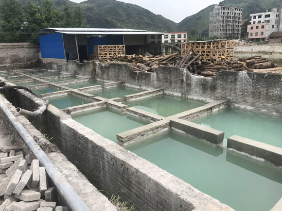 咸寧市生態環境局通山分局副局長 張青山:原來是四家廠共用這個池的,現在這個廠新建了一個污水沉淀池,大概一共有360個立方,通過一級一級沉淀,沉淀最后一個池的水是清水,可以進行重復利用,通過循環裝置,抽到這個廠里面,進行利用。